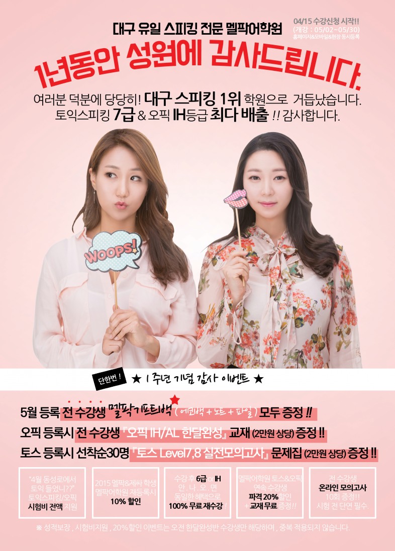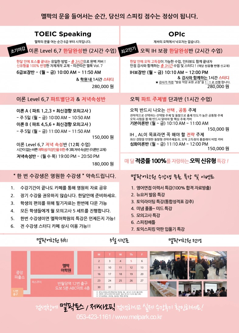 동성로에서 4월 토익 수강 후 멜팍어학원 등록 시 시험비 100% 무료!!!
