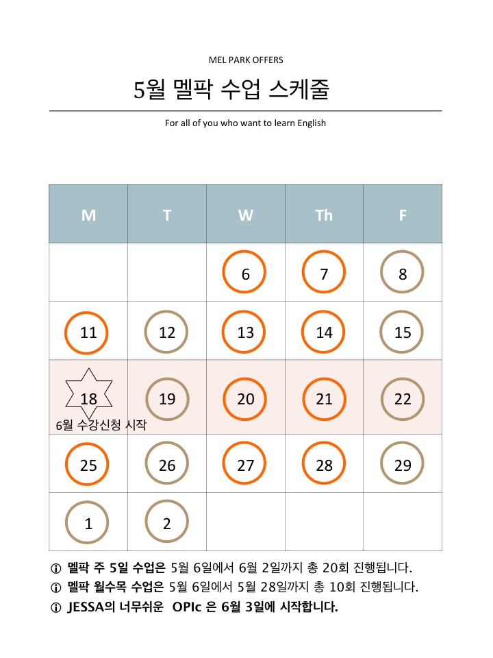 공지 | 멜팍어학원 5월 수업 스케줄 페이지 정보 작성자 MELPARK 작성일15-05-05 18:24 조회3,072회 댓글0건 이전글 다음글 목록 본문 멜팍어학원 5월 수업 스케줄 입니다. 댓글목록 등록된 댓글이 없습니다. 이전글 다음글 목록