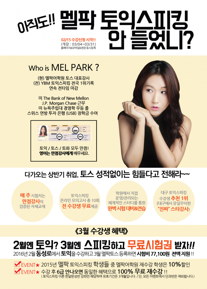 여러 이벤트 , 고득점을 위한 실전반 , 저녁 이론반까지 새롭게 만날 수 있는