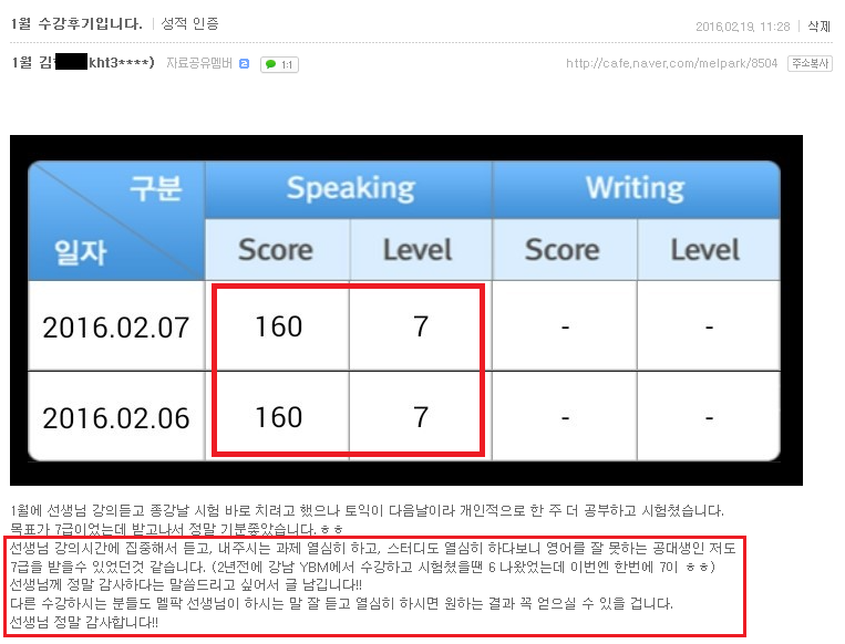 토스 | (대구토스 7급후기) 공대생도 한달수업 후 한.번.에 7급 !!! 페이지 정보 작성자 MELPARK 작성일16-02-23 09:00 조회4,392회 댓글0건 이전글 다음글 목록 본문 (클릭 하시면 크게 보실 수 있습니다.) 수강생 후기 입니다. 더 많은 후기는 우측 카페 링크 가입 후 보실 수 있습니다. 이전글 다음글 목록