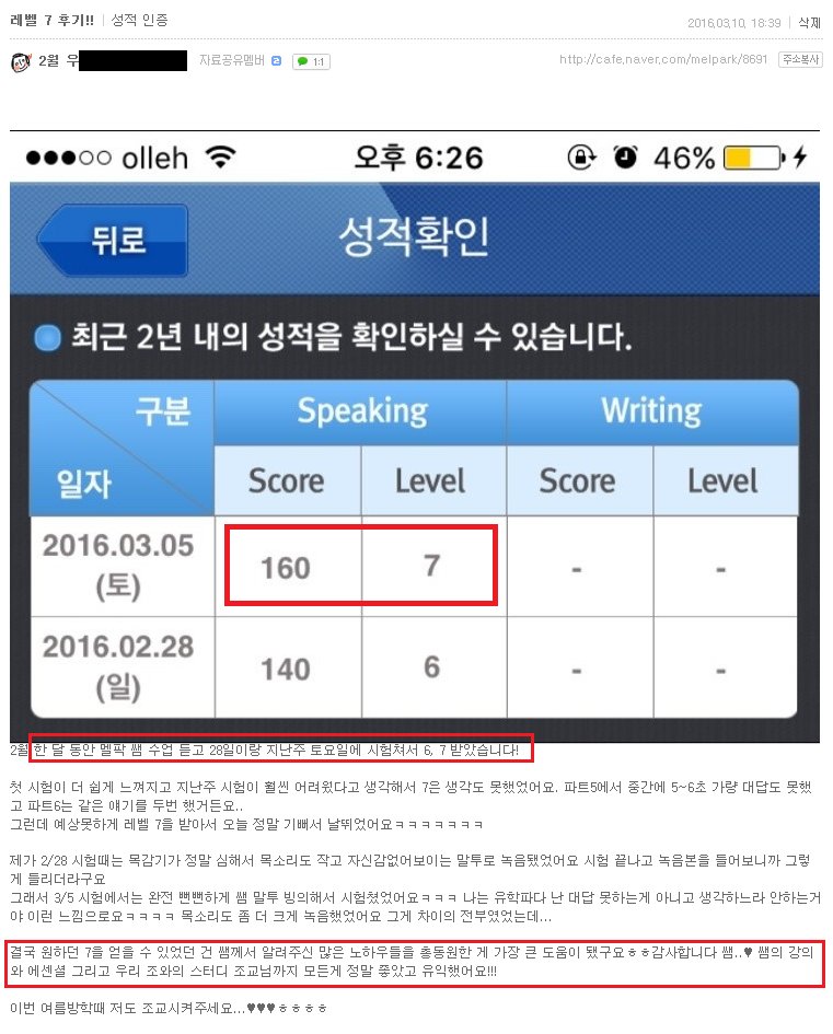 토스 | (대구토스 7급후기) 쌤께서 알려주신 많은 노하우 => 원하던 "7급" 획득~~ 페이지 정보 작성자 MELPARK 작성일16-03-16 15:26 조회4,280회 댓글0건 이전글 다음글 목록 본문 (클릭 하시면 크게 보실 수 있습니다.) 수강생 후기 입니다. 더 많은 후기는 우측 카페 링크 가입 후 보실 수 있습니다. 이전글 다음글 목록